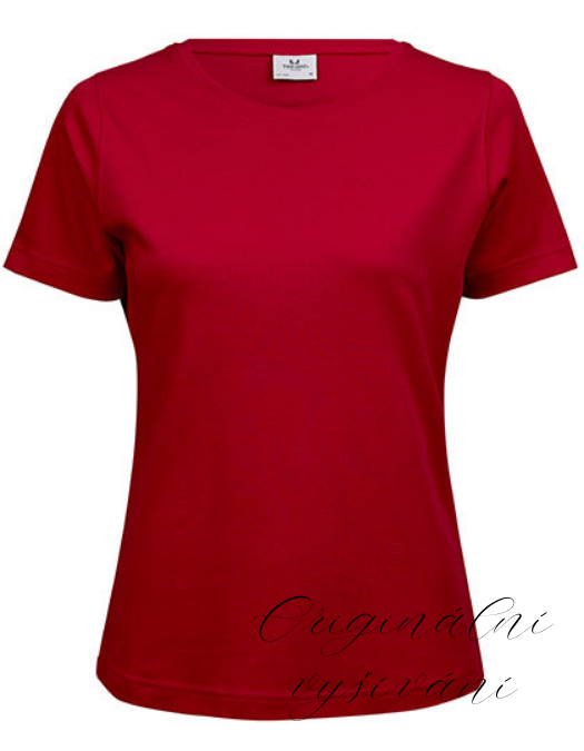 Dámské tričko červené s výšivkou na přání - Organická bavlna